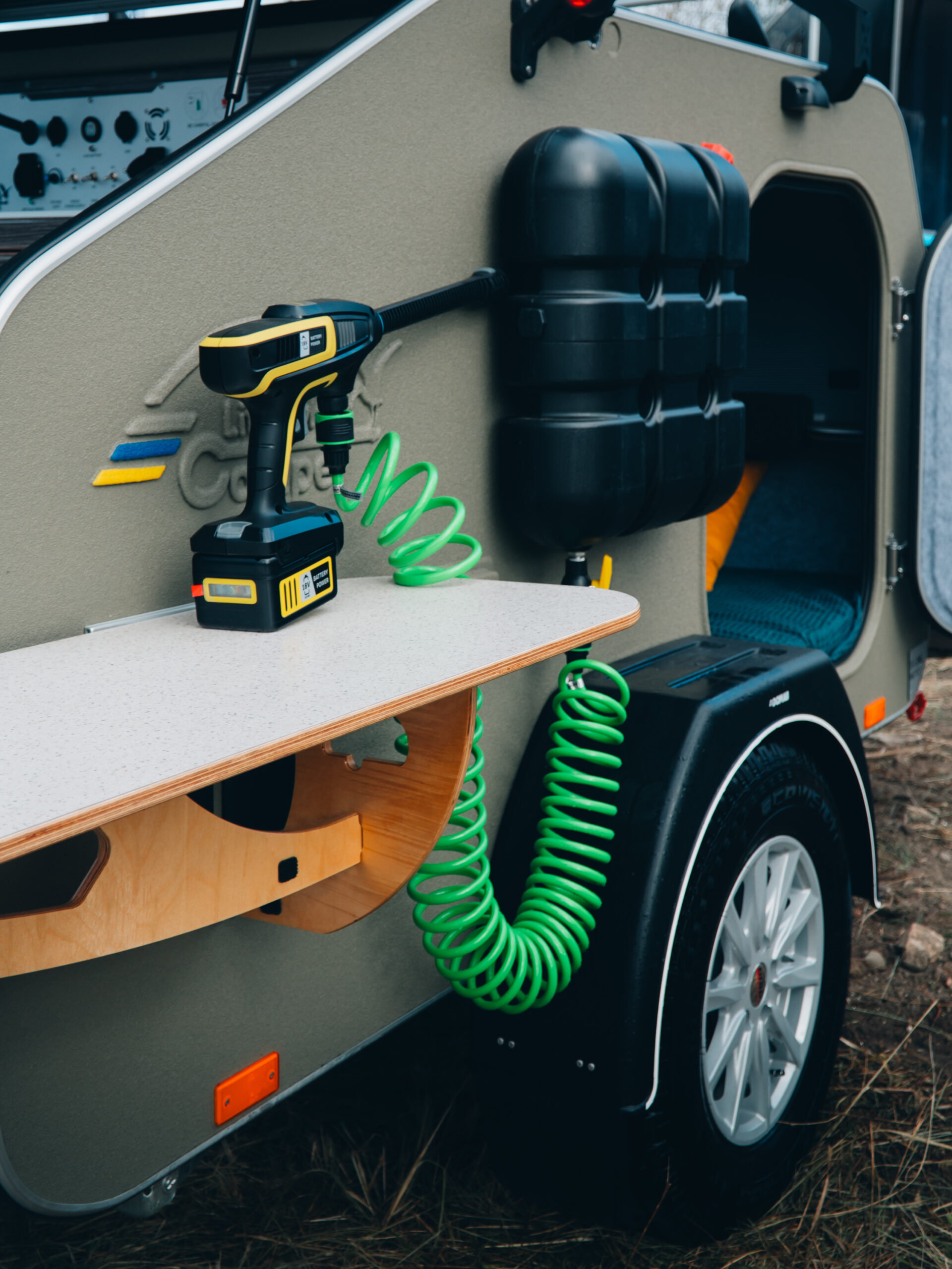 • Ytri áfylling á 58 lítra ferskvatnstanki staðalbúnaður. 35 lítra grávatnstankur.